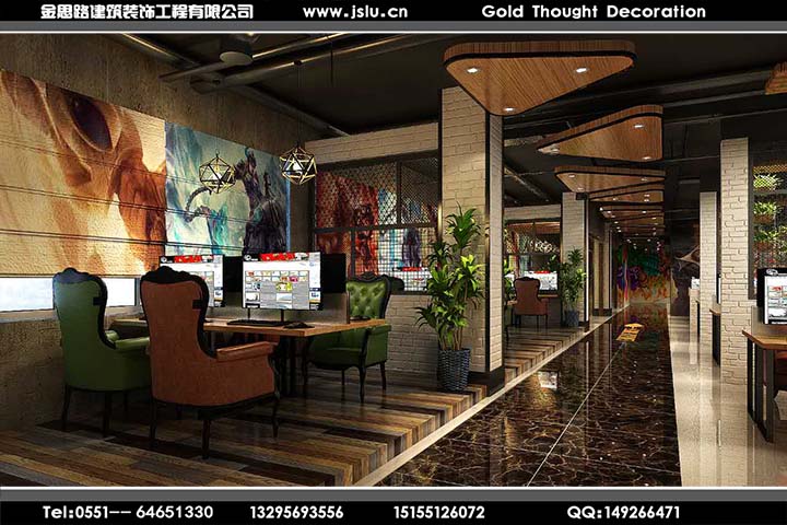 金思路裝飾,設(shè)計施工國家二級資質(zhì),安全生產(chǎn)許可證持有單位,專注工裝設(shè)計20年,專業(yè)值得信賴!金思路裝飾打造全新網(wǎng)咖模式,全新設(shè)計理念,以網(wǎng)咖運(yùn)營為設(shè)計核心,一站式為您服務(wù),給用戶帶來好的體驗。我們做好每一個網(wǎng)吧設(shè)計服務(wù)環(huán)節(jié),力求精致,發(fā)揮團(tuán)隊精神提供優(yōu)質(zhì)的網(wǎng)吧裝修設(shè)計服務(wù),打造令您滿意的作品!